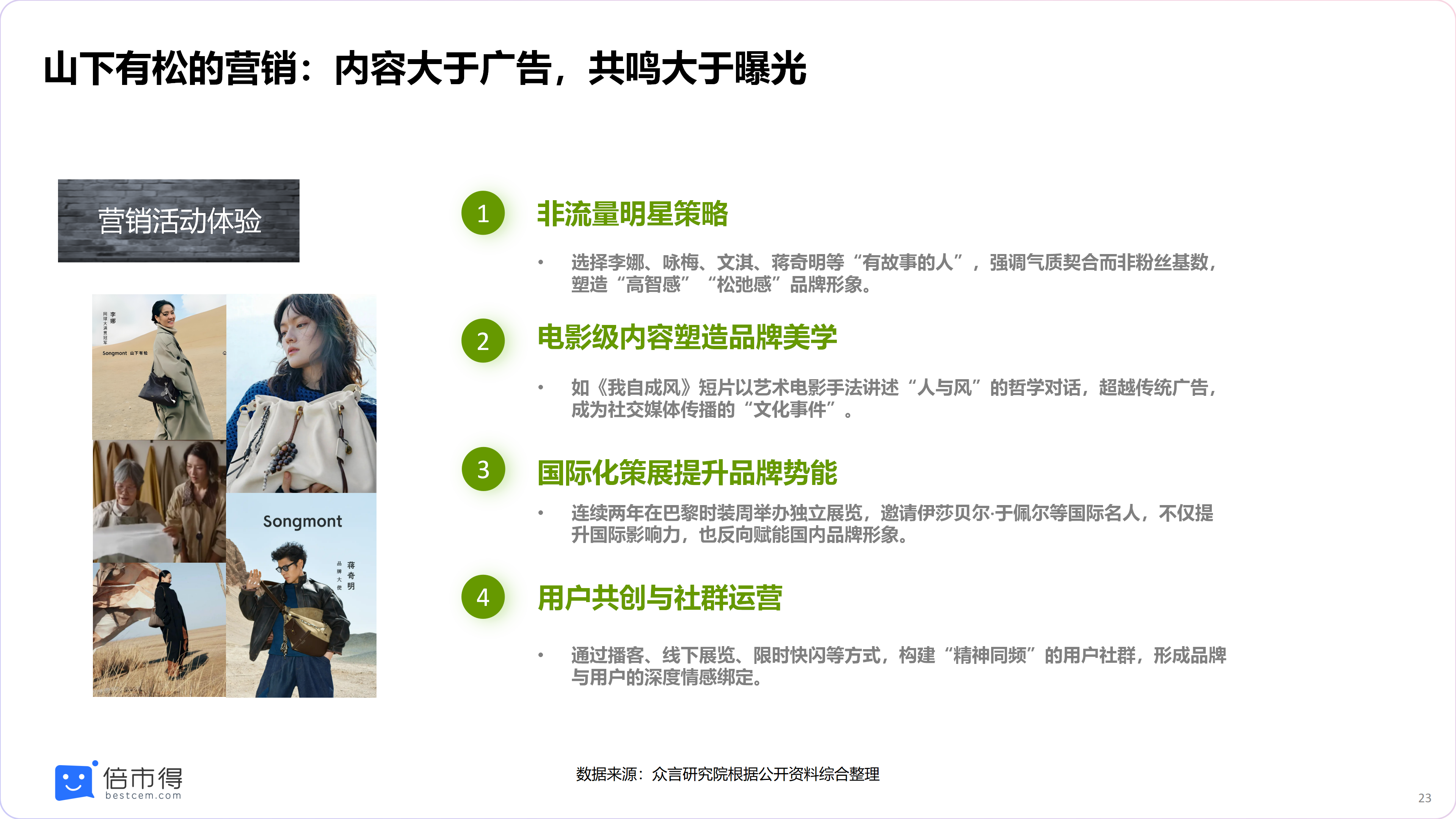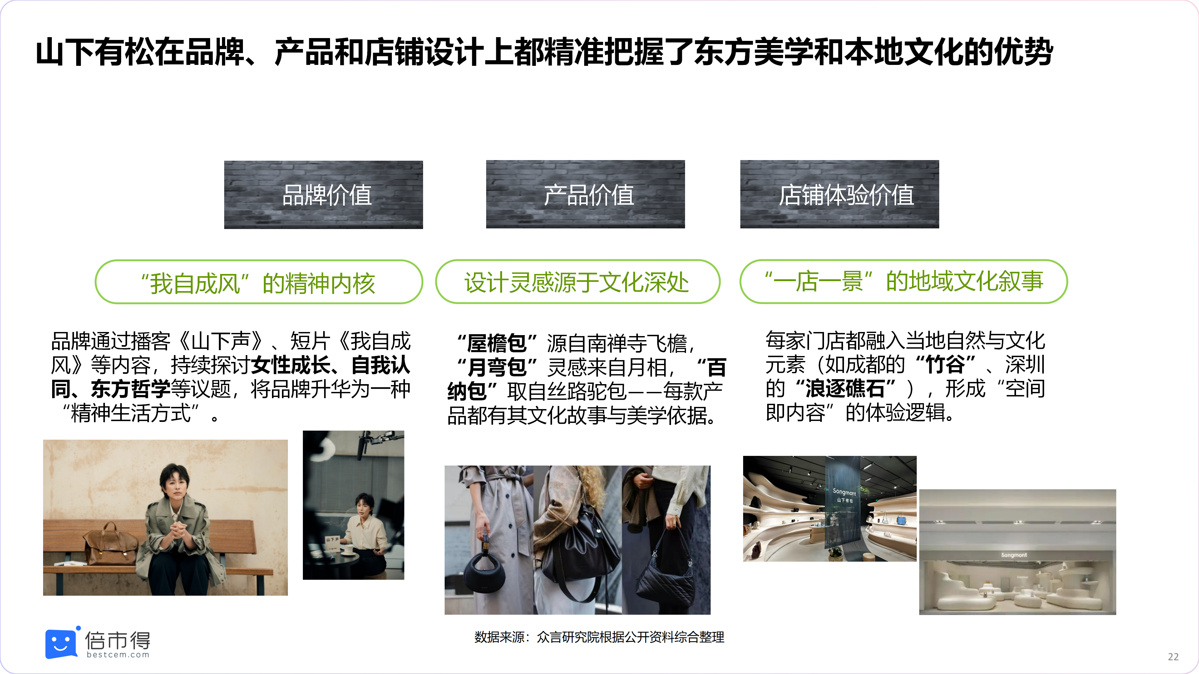 此外,该品牌通过播客《山下声》、短片《我自成风》探讨女性成长与东方哲学,相关内容在小红书累计传播量超 800 万次,用户评价 “背着的不是包,是一种生活状态”。