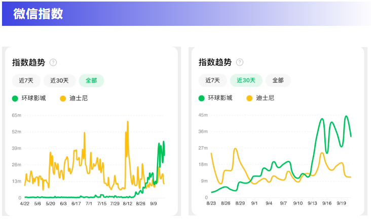 9月20日,备受关注的北京环球影城正式开业。自开票起,多个相关话题冲上微博热搜,9月起微信指数直线上升,成为近期最热门话题。