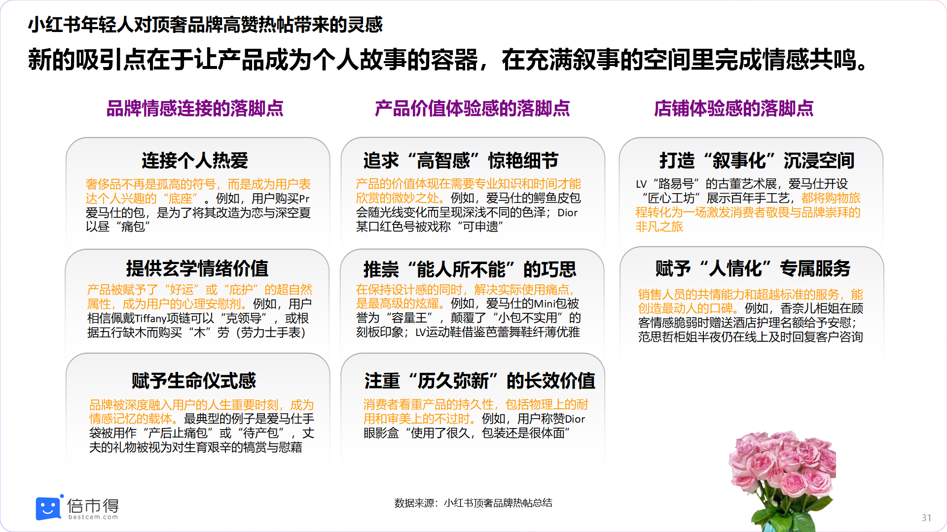 数据显示,奢侈品的 “身份标签” 功能正在持续弱化,而 “自我价值表达”“情绪慰藉”“兴趣表达” 等情感驱动型动机日益凸显。在小红书、微博等平台,“用奢侈品证明社会地位” 的相关讨论占比逐年下降,取而代之的是 “奖励自己”“治愈生活” 等关键词的高频出现。