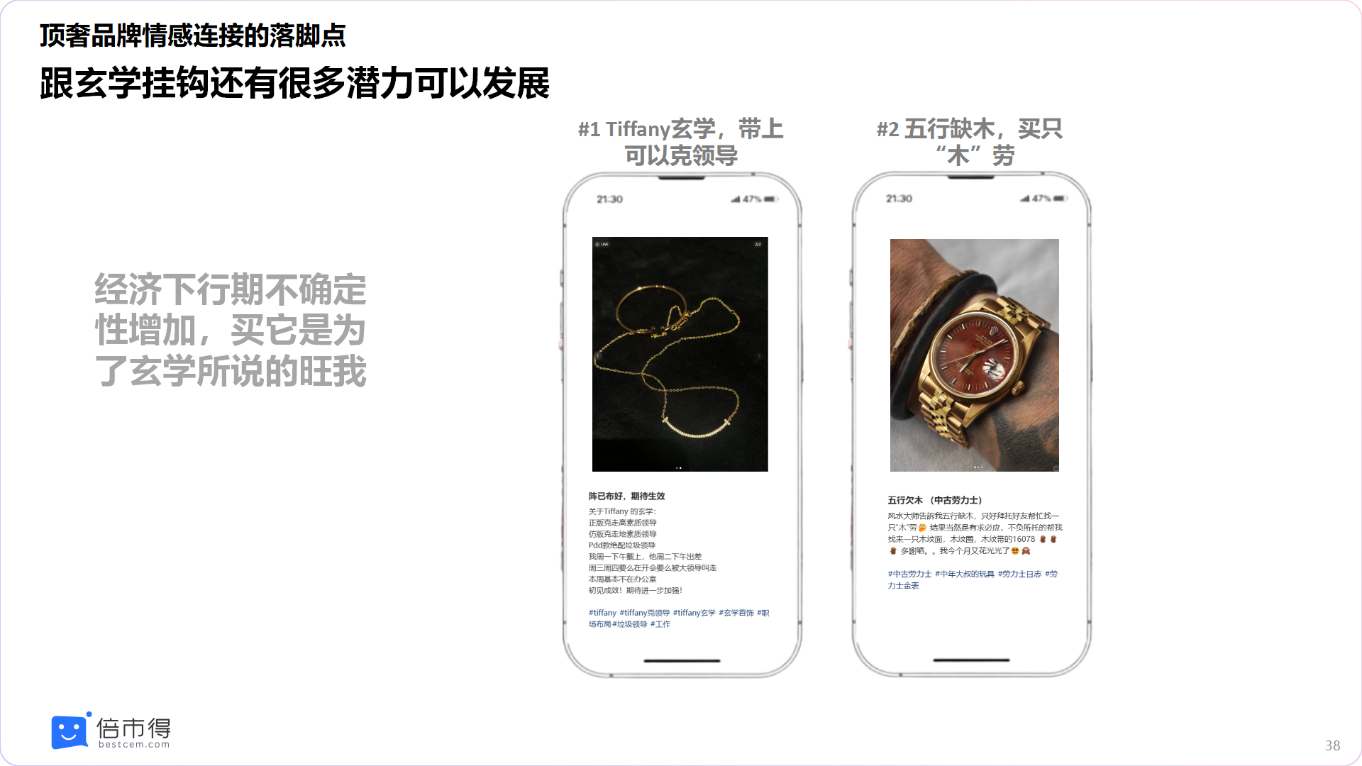 此外,把奢侈品当“玄学外挂” 成为新的舆情热点:佩戴某款项链 “克领导”、购买某款木纹手表 “补五行缺木” 等分享,在小红书相关话题累计阅读量超 5000 万次 ,这种将产品与心理慰藉绑定的消费行为,体现了经济下行期消费者对确定性和安全感的追求