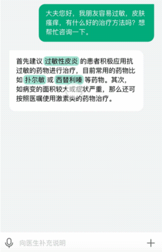 在互联网问诊过程中,医生的回复经常会包含各种医学专业名词、术语,普通用户会存在一定的理解和认知门槛。问诊产品可以通过自动识别医生回复中的专业名词,降低普通用户的理解门槛,提升了用户的决策效率。