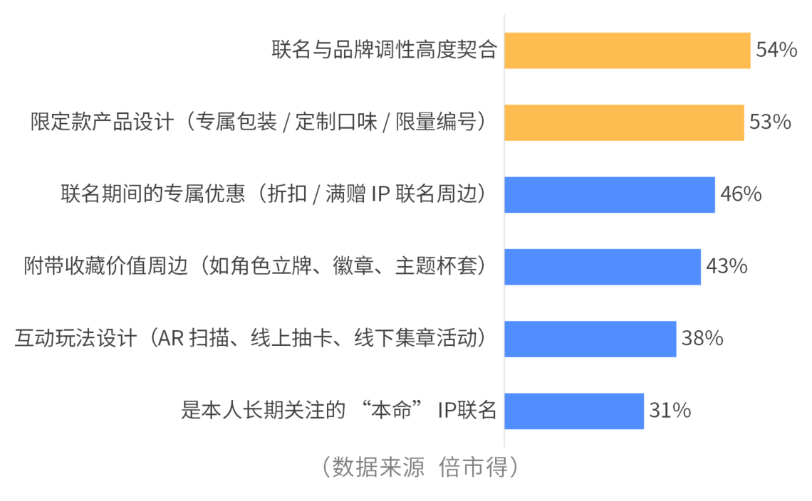 而要想提升消费者购买IP产品的兴趣,IP与品牌调性的高度契合是最重要的因素。此外,能够造成稀缺性、定制感的联名也更容易引发消费。
