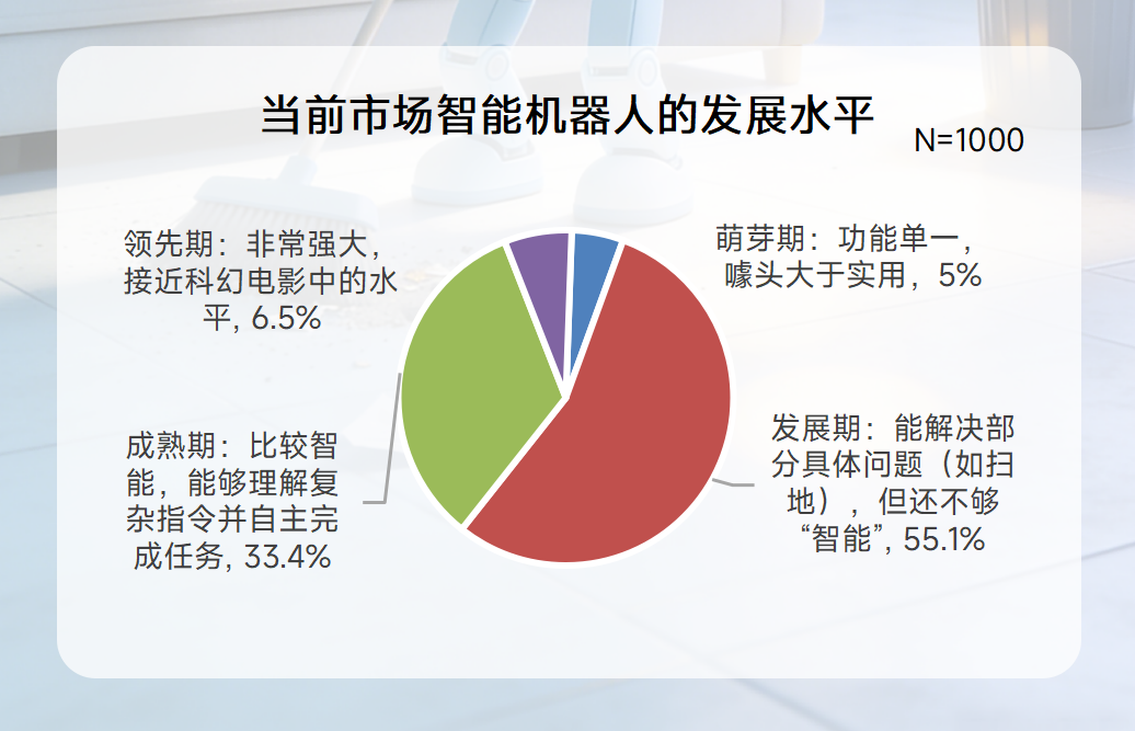 同时,55.1% 的受访者认为当前智能机器人处于 “能解决部分具体问题,但还不够智能” 的发展期,33.4% 认为已进入成熟期,反映出大众对智能机器人的技术发展有客观认知。
