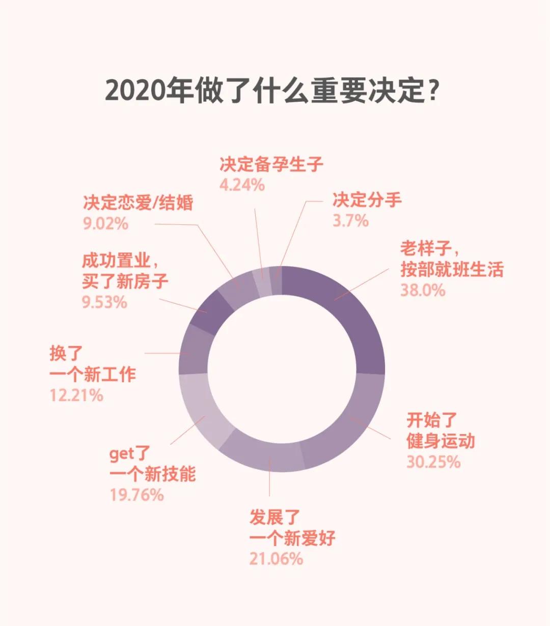 在时间仿佛停滞的2020年,“活下去”,是大多数人(73.71%)最真实也最质朴的愿望。有不少人(38.0%)选择按部就班生活,经历了如此大的全球性事件之后,最日常的也正是最宝贵的。