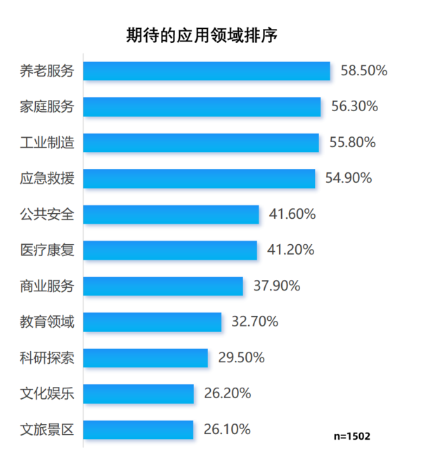 近日,中国青年报社社会调查中心 联合 众言科技(旗下拥有问卷网、倍市得、SPSSPRO等核心品牌)发布的一项由1502名受访者参与的调查显示,养老服务(58.5%)、家庭服务(56.3%)是受访者期待的人形机器人前两大应用领域。