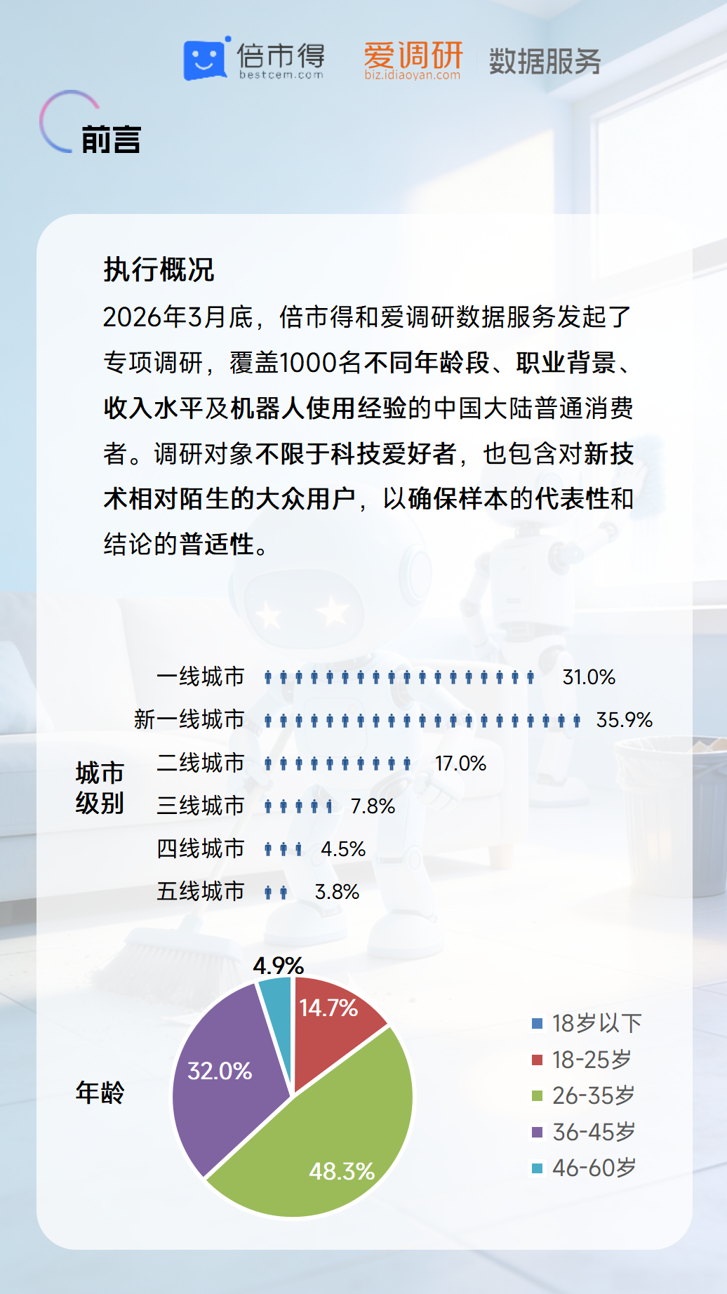 本次市场调查覆盖一至五线城市,其中新一线城市与一线城市调研样本占比分别达 35.9%、31%,26-35岁中青年群体成为调研主力(48.3%)。