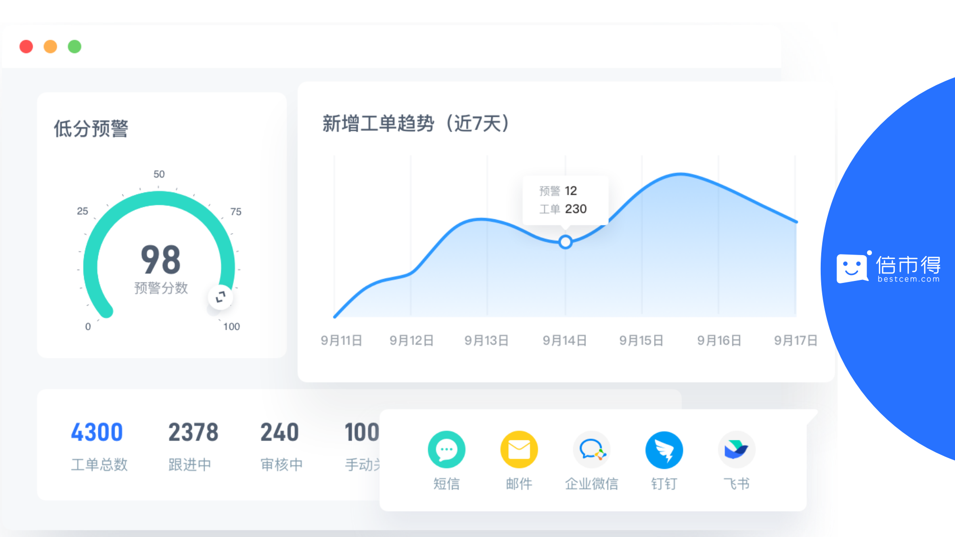 这里,当企业收到“不满意”之后,通过倍市得CEM系统内置的一套“秒级”发单、自动分配的预警工单模块式,针对用户的体验问题和低分反馈,第一时间生成预警工单自动分派给负责人,及时通知责任人采取跟进动作,形成闭环行动。