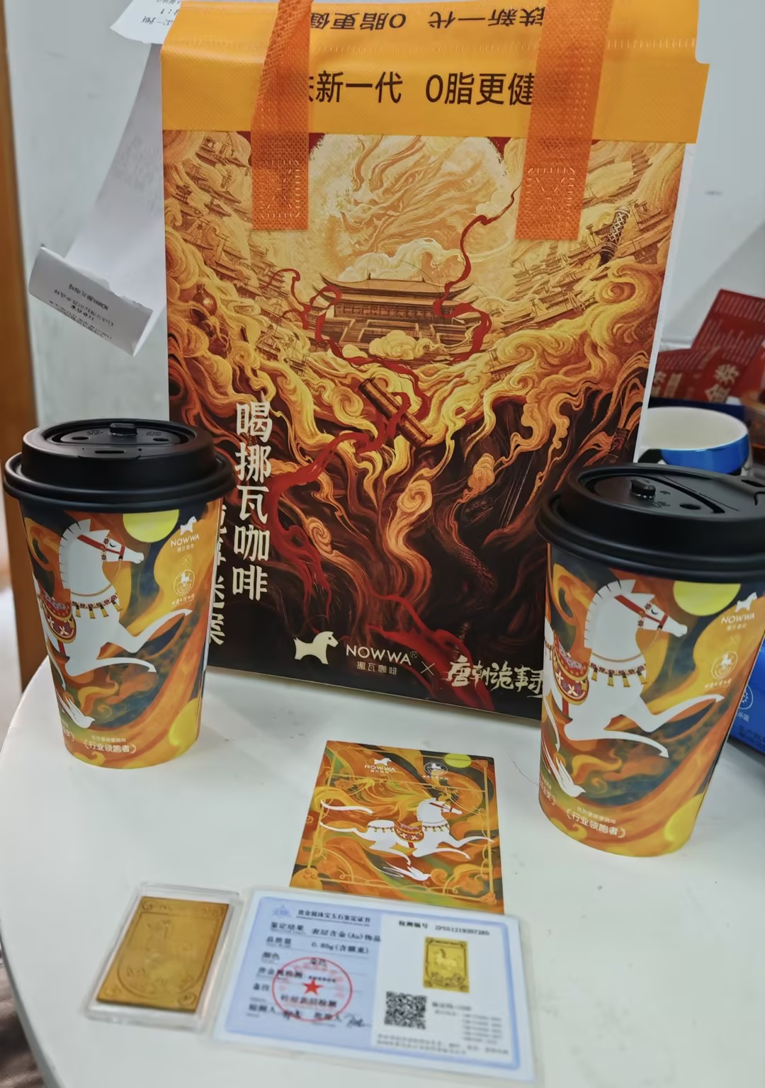 2026年初,挪瓦咖啡精准捕捉年轻人对文博IP的趣味化需求与减脂潮流,与甘肃省博物馆合作,以标志性IP“马踏飞燕”为核心,进行产品创新。核心产品为“马踏飞燕联名款超模咸酪拿铁(减脂版)”,产品本身契合年轻人的减脂需求,采用零卡糖、低脂咸酪,兼顾口感与健康;同时,杯身设计既保留了文博IP的辨识度,又符合年轻人的审美偏好。联名期间,同步推出“马踏飞燕”主题黄金贴,提升销量和传播度。
