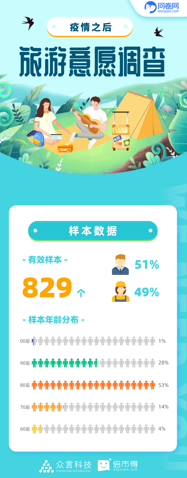 为了研究疫情之后,国民对于旅游的意愿情况,众言旗下专业调研平台「问卷网」和数据洞察与客户体验管理平台「倍市得」开展问卷调研,并发布《疫情之后:旅游意愿调查报告》。