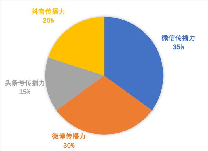 地市级文旅新媒体综合传播力评价维度由微信传播力、微博传播力、头条号传播力和抖音传播力四个一级指标构成。权重构成为:微信传播力35%;微博传播力30%;头条号传播力15%;抖音传播力20%。