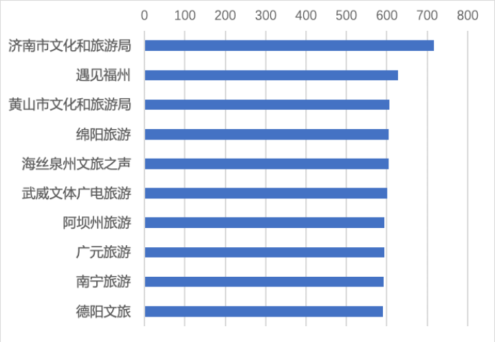 从2020年4月各城市头条号的表现看,排在TOP10的是:济南市文化和旅游局、遇见福州、黄山市文化和旅游局、绵阳旅游、海丝泉州文旅之声、武威文体广电旅游、阿坝州旅游、广元旅游、南宁旅游、德阳文旅。