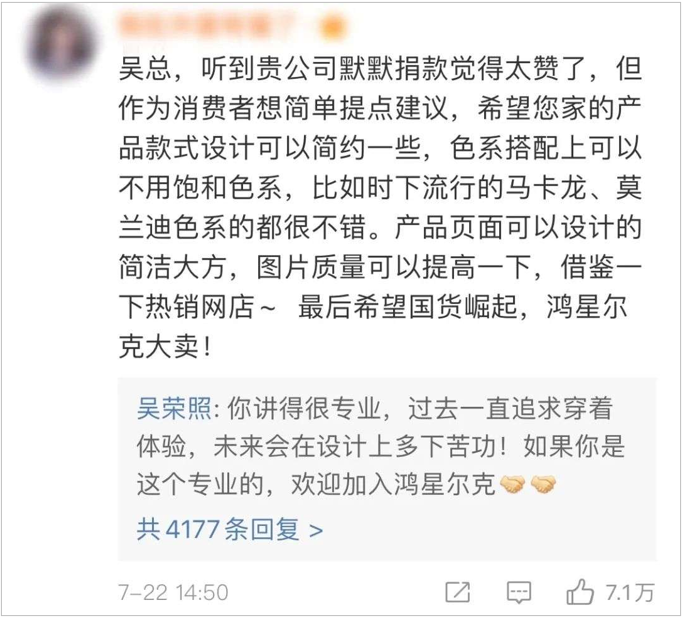 在一众热心网友因鸿星尔克默默捐款而支持、点赞时,一些忠诚的品牌拥护者悄然表露心迹,表达了品牌在产品创新上的期待。
