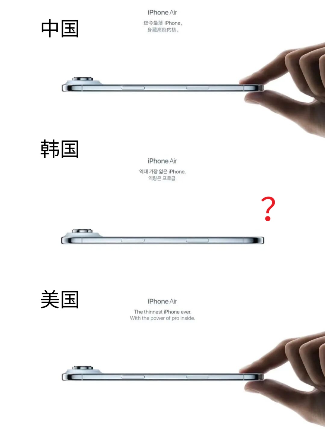 苹果作为全球科技巨头,在产品宣传中向来以统一化、精细化著称,但面对不同市场的文化差异,其却展现出十足的严谨与灵活性 —— 为推广 iPhone 17 Air 的轻薄特性,苹果在全球官网均采用动态“单手捏合”动画,唯独韩国官网将该动画替换为静态图片,这一调整背后藏着对当地文化敏感点的精准规避。